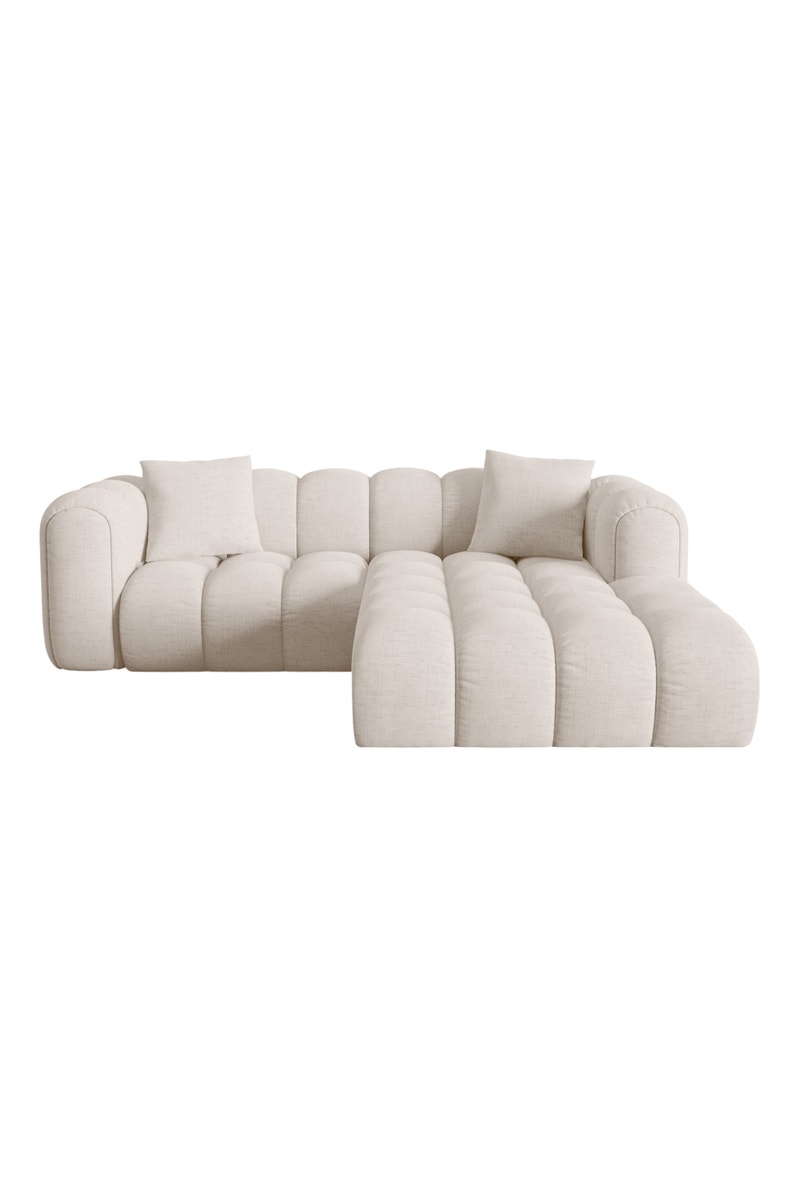 Canapé d'angle droit Astro - Beige - 3 places - En tissu texturé et tissu chenille moly