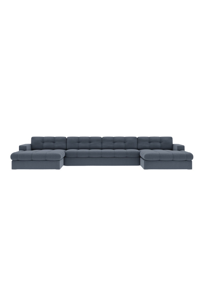 Canapé d'angle gauche panoramique Yohan - Bleu gris - 5 places - En tissu texturé