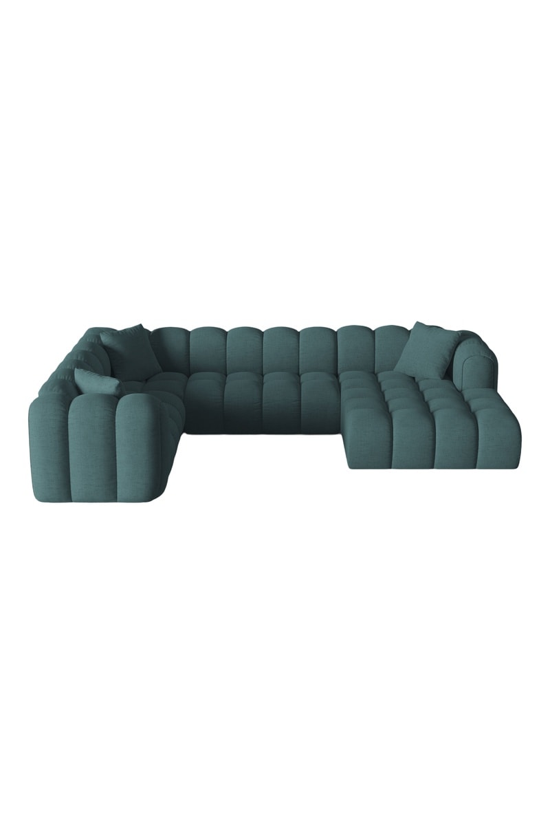 Canapé d'angle gauche panoramique Arden - Bleu canard - 6 places - En tissu chenille moly