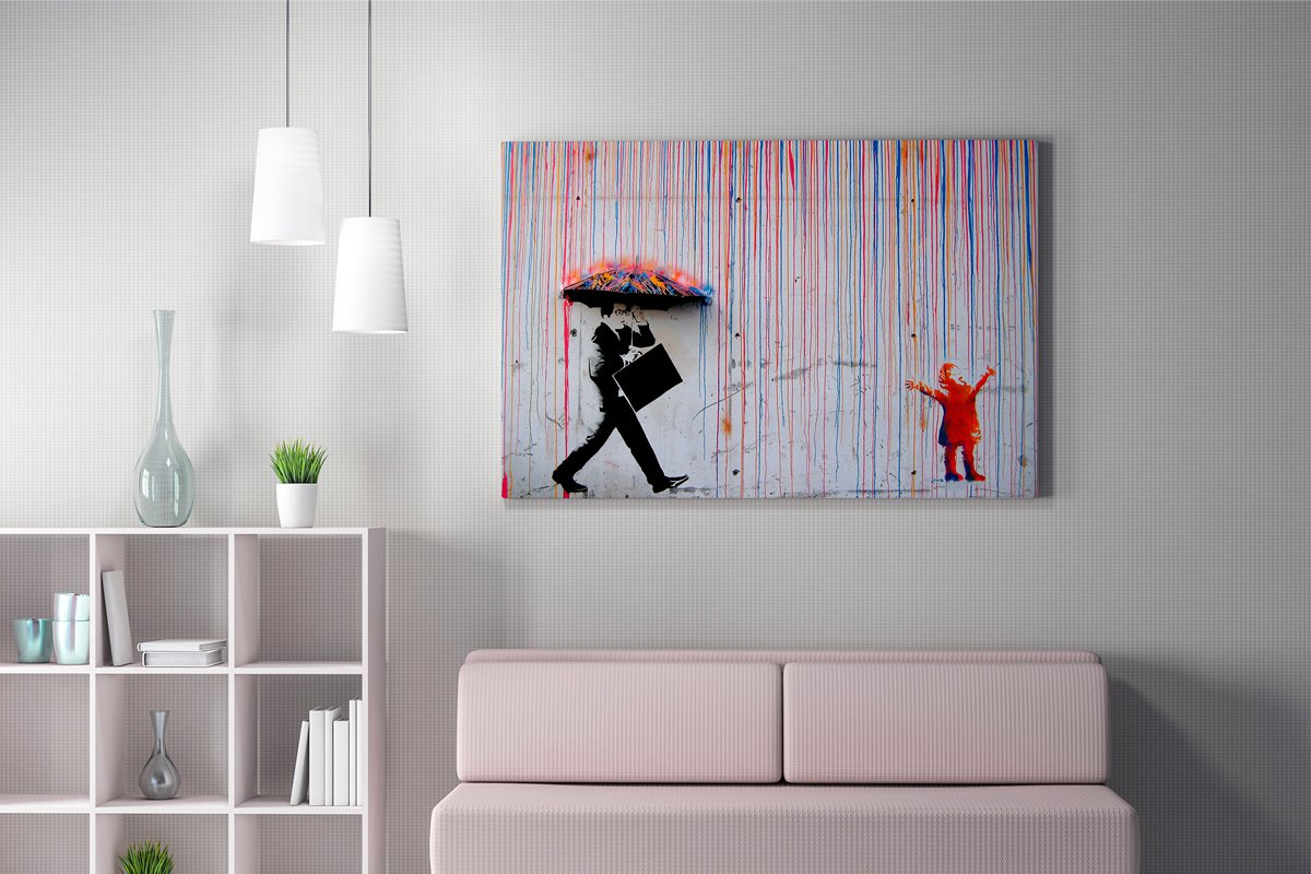 Tableau "Pluie arc-en-ciel" - Banksy - 70 x 100 cm - Reproduction