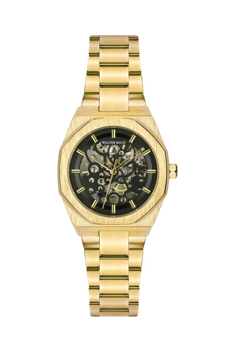 Montre automatique en silicone et plaqué ion or jaune - Walter Bach