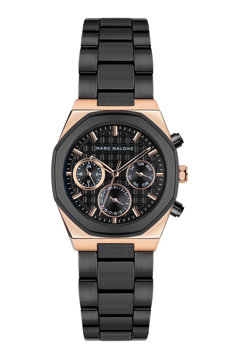 Montre à quartz en acier - Noir et doré rose - Marc Malone