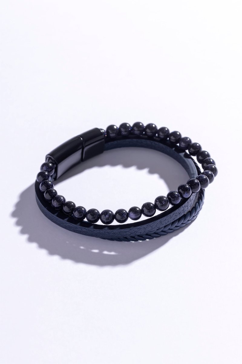 Matière : cuir synthétique, perles d'imitation et acier inoxydable