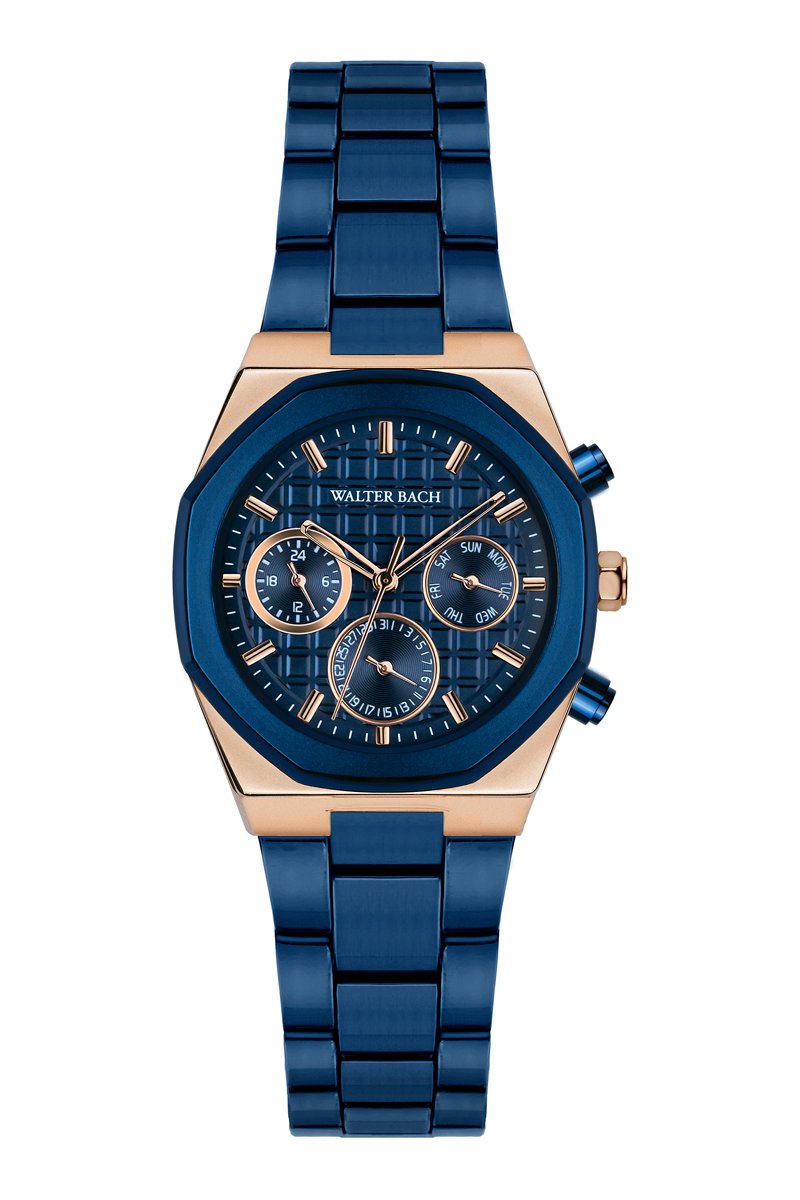 Montre à quartz en acier - Bleu et doré rose - Walter Bach