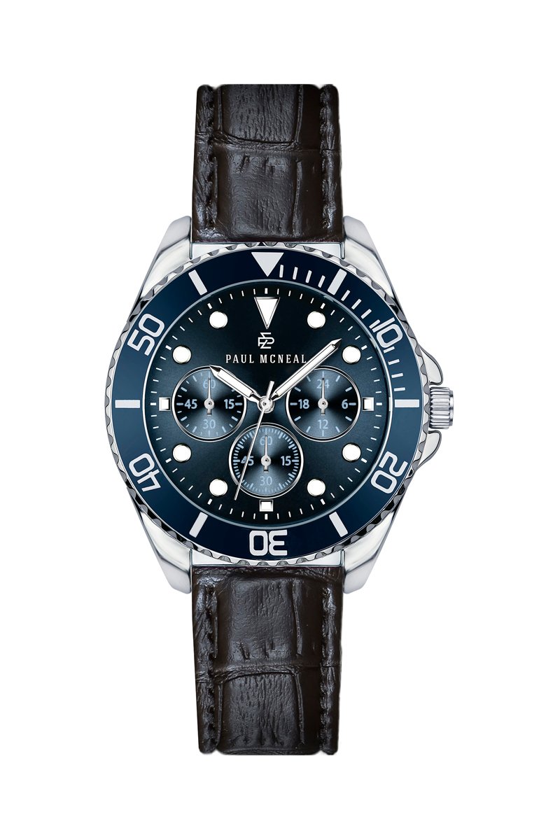 Montre à quartz en cuir et plaqué ion argent - Paul McNeal