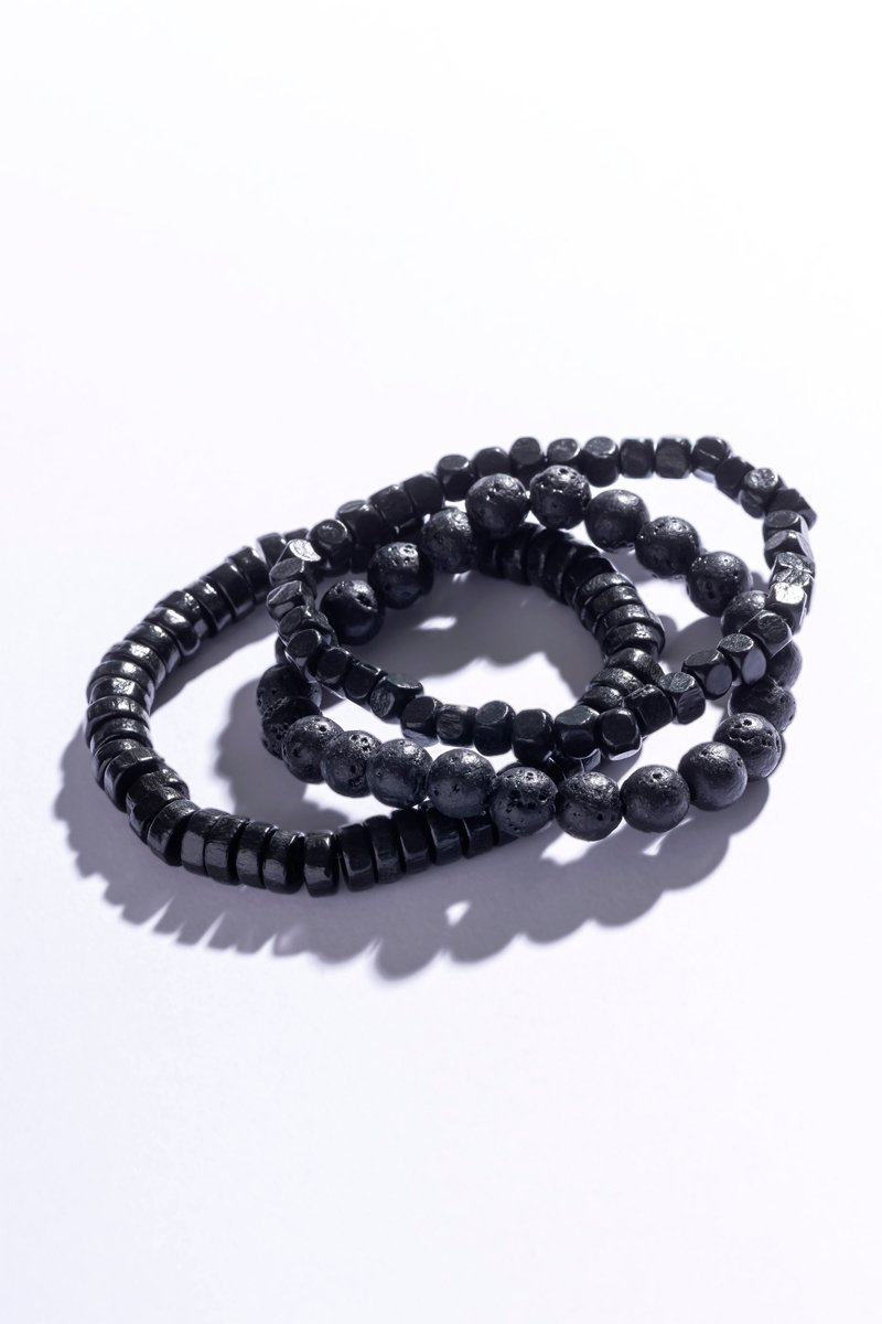 Bracelet serti de pierres de lave et perles de bois.
