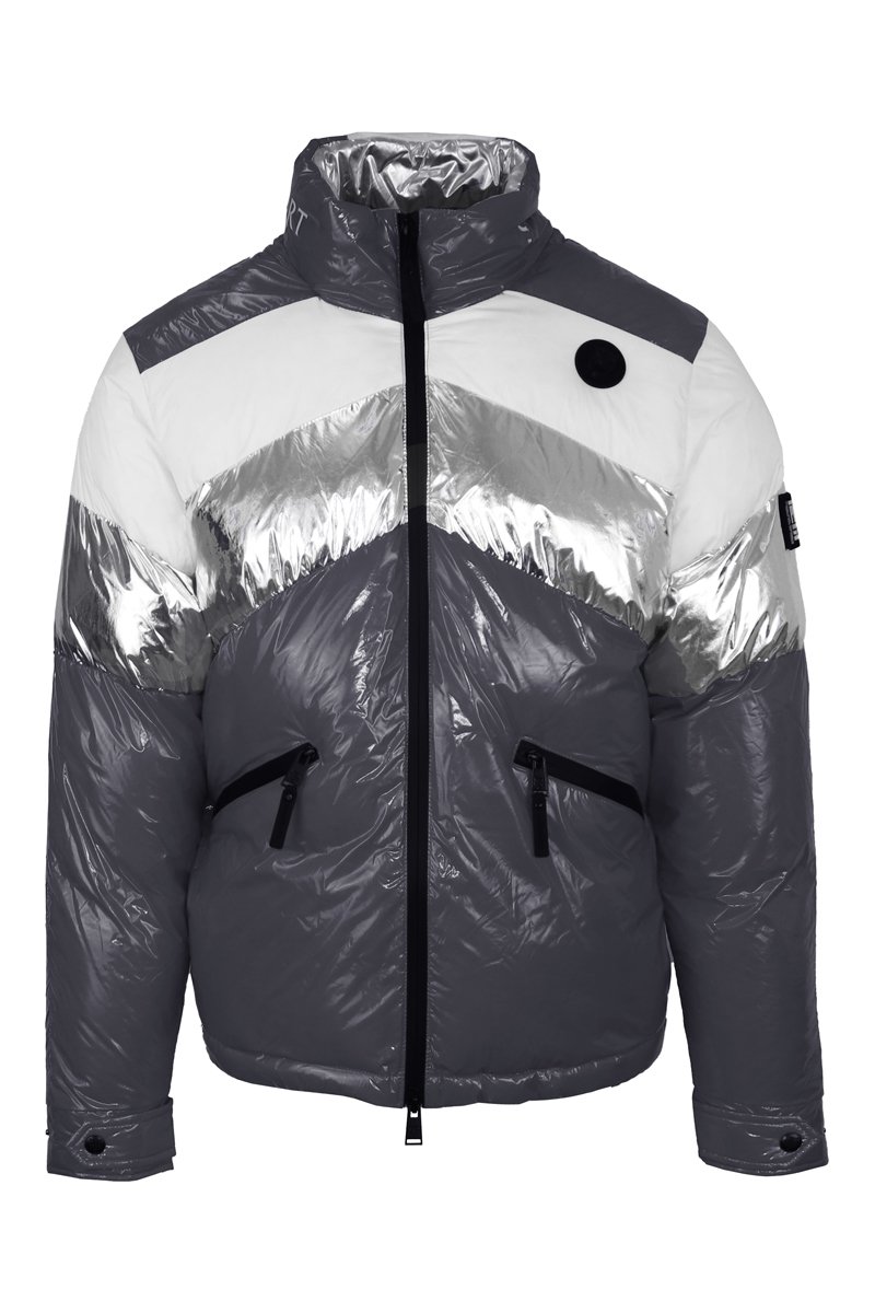 Doudoune à manches longues avec languette pressionnée dont 1 avec patch et logo.