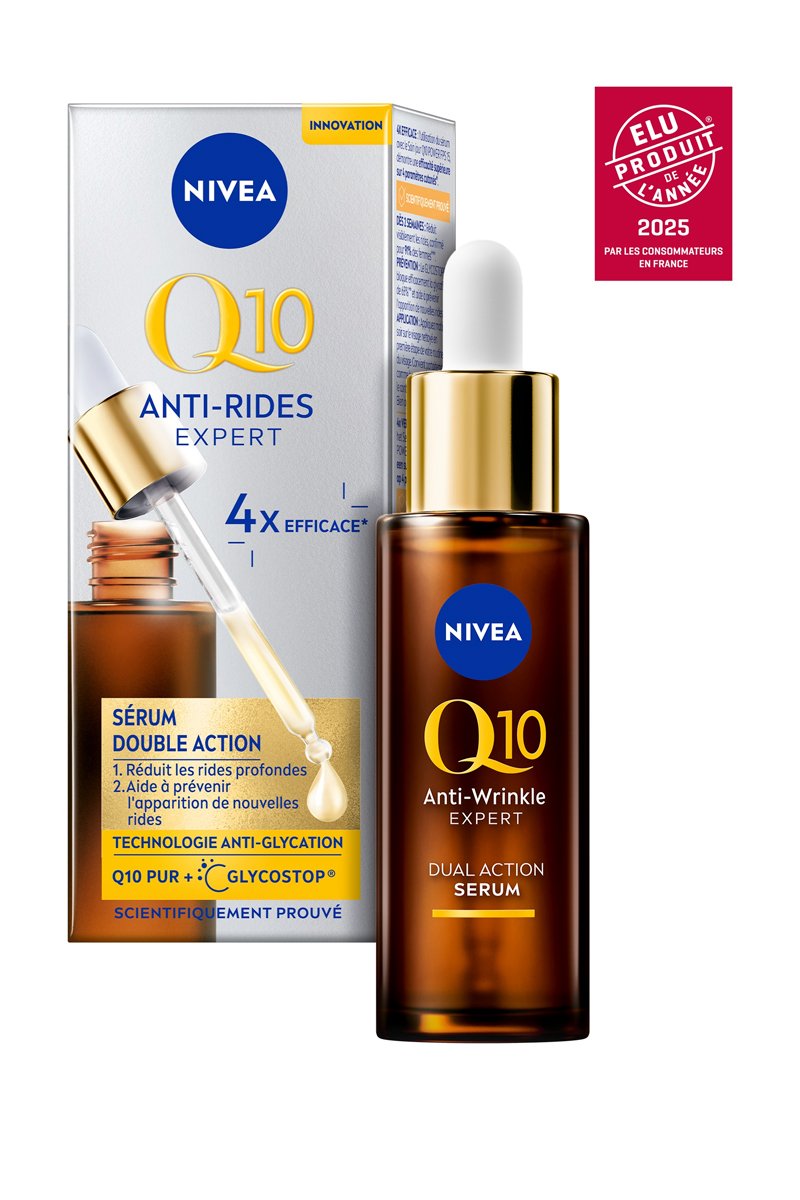 Le Sérum Visage Double Action Anti-Rides Expert associe le Glycostop au Q10 Pur, pour des rides visiblement réduites dès 2 semaines.