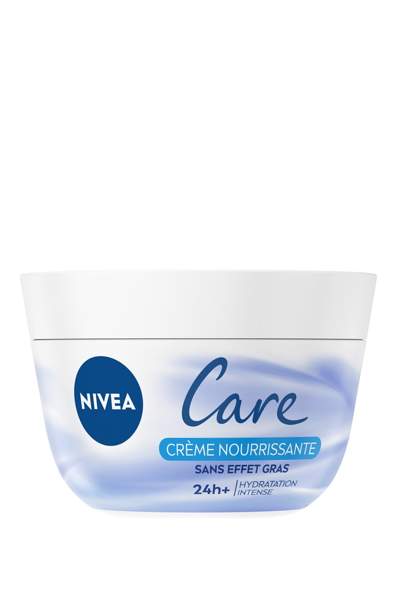 Conseils d'utilisation : appliquer quotidiennement la crème nourrissante Nivea Care sur le visage et le corps.