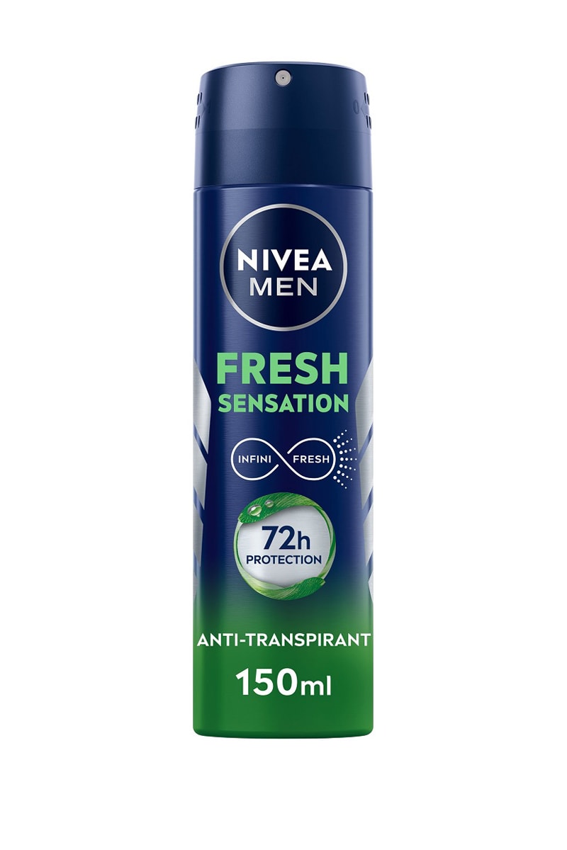 L'anti-transpirant Nivea MEN Fresh Sensation offre une protection contre la transpiration et les odeurs pendant 72 heures grâce à la technologie Derma 72 H Active.
