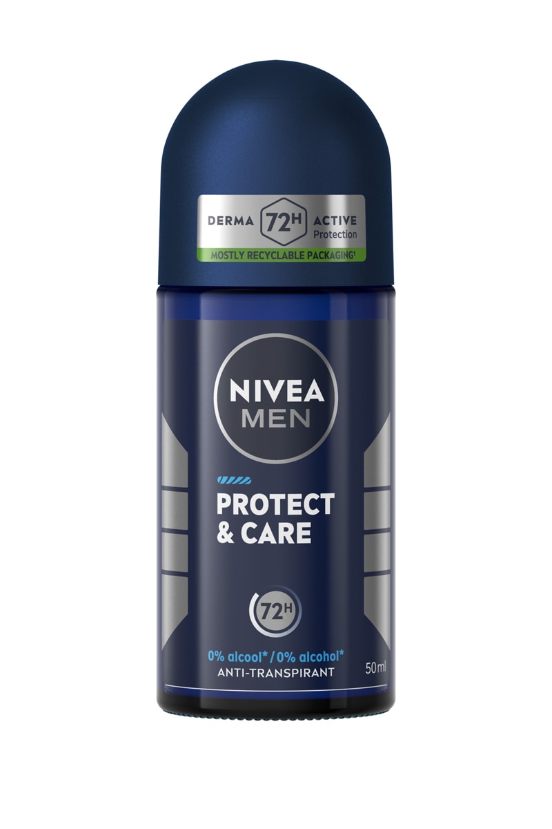 La formule anti-transpirante du déodorant bille Protect & Care de Nivea MEN combine 72 H de protection contre les odeurs corporelles grâce à son complexe de soin Nivea MEN et offre une sensation agréable ainsi qu'une fraîcheur longue durée sur la peau.