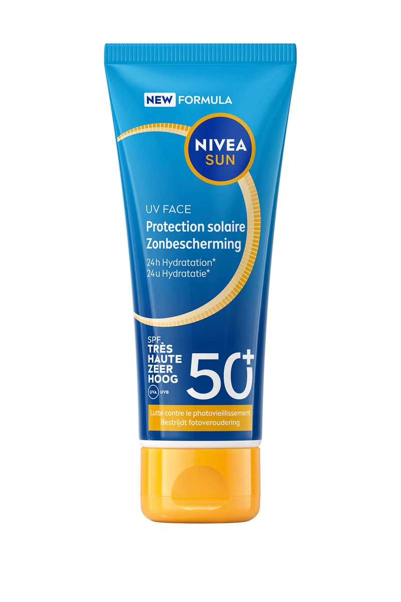 La Crème UV Visage Hydratante SPF 50 Nivea SUN protège efficacement et immédiatement la peau contre les rayons UVA/UVB.