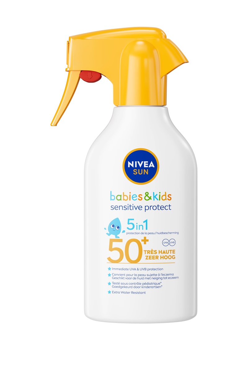 Crème solaire pistolet sensitive bébés & enfants Nivea sun SPF 50+.