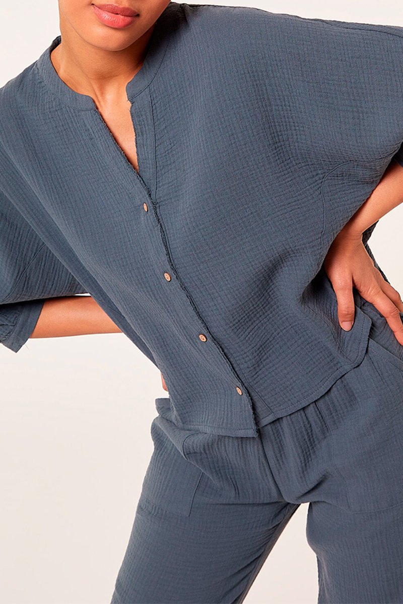 Chemisier à manches 3/4 boutonnées.