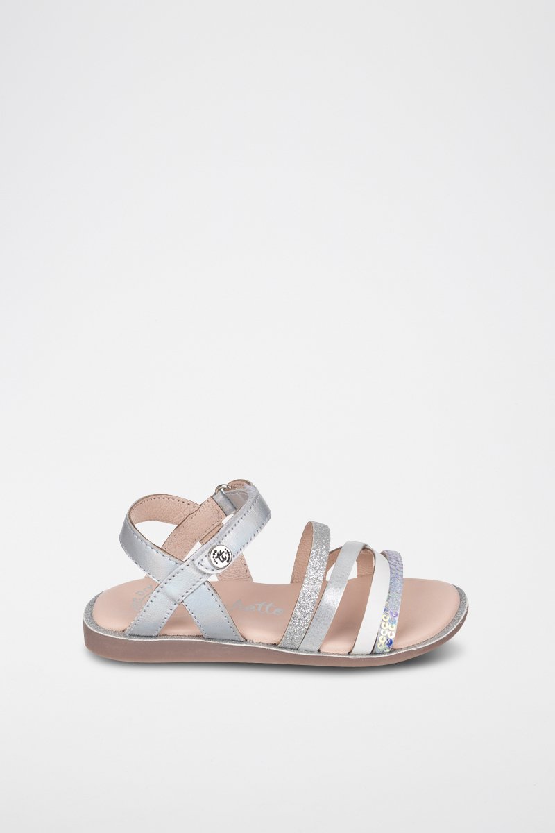 Sandales en cuir - Argenté et gris