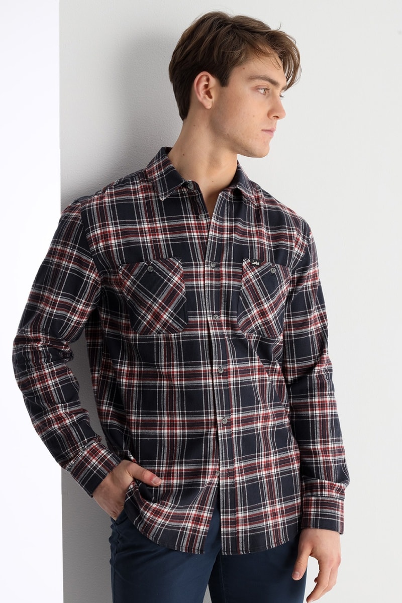 Chemise - Bleu foncé et rouge