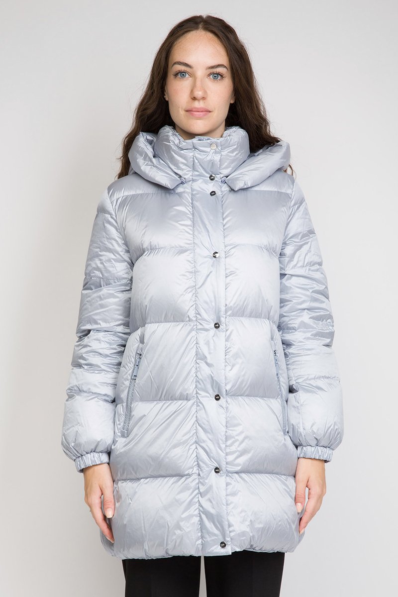 Doudoune longue à capuche.