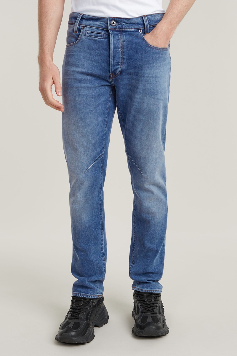 Le jean D-Staq 5-Pocket Slim marie des influences western traditionnelles aux finitions d'un pantalon chino classique.