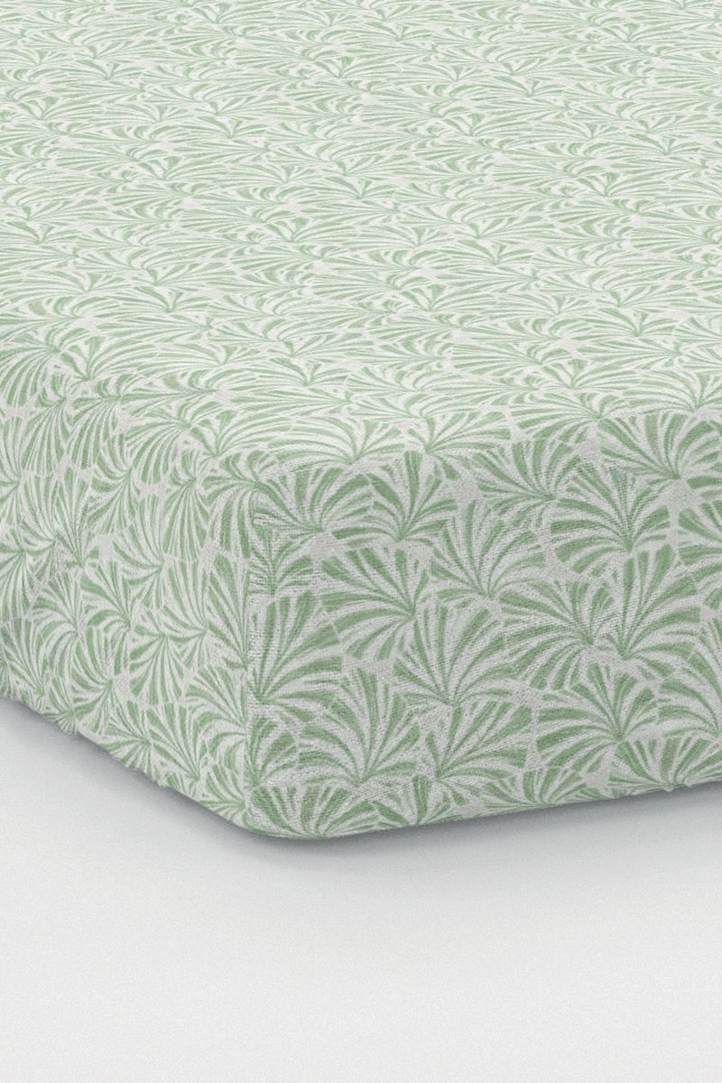 Drap-housse en satin de coton Feuilles d'amour - Vert