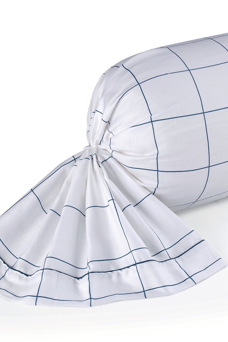 Taie de traversin en satin de coton 80 fils/cm² Carreaux minimalistes - Blanc
