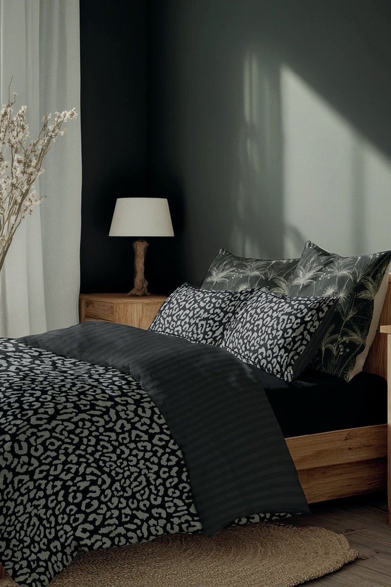 Parure de couette en satin de coton 80 fils/cm² Instinct - Noir et gris
