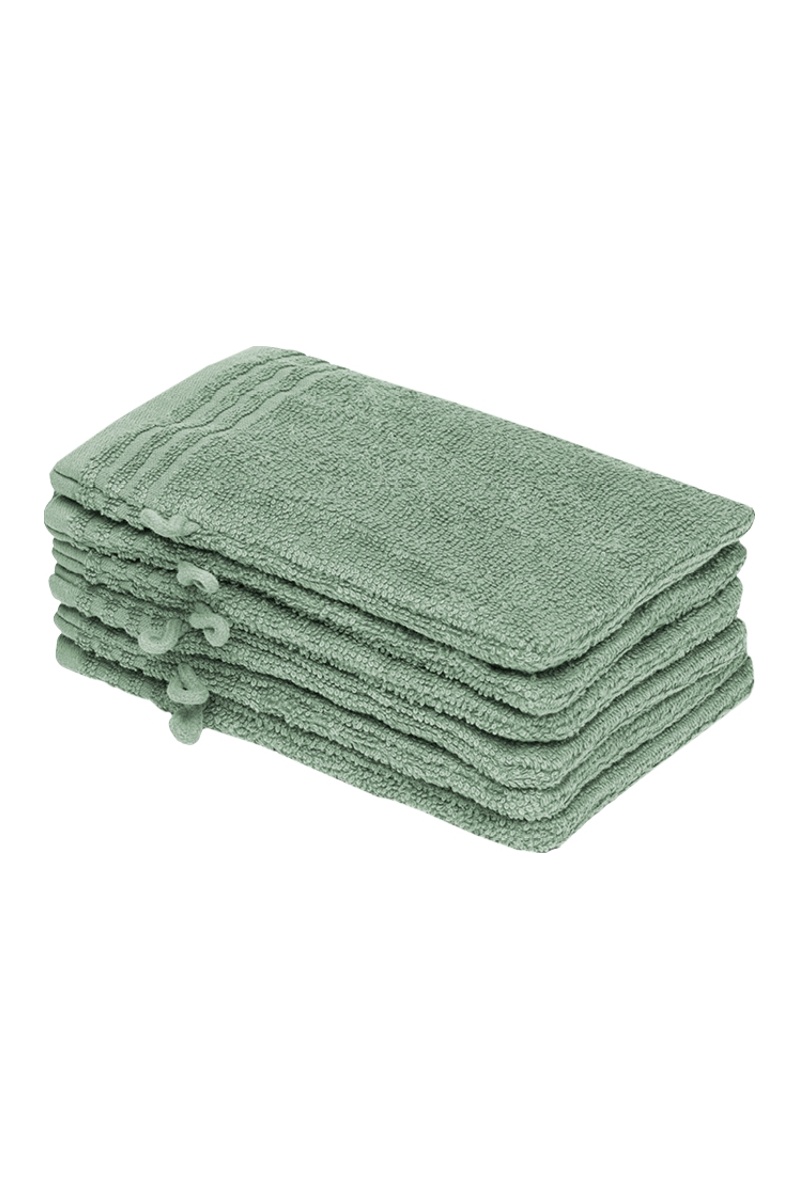 6 gants de toilette Ecume - Vert sauge