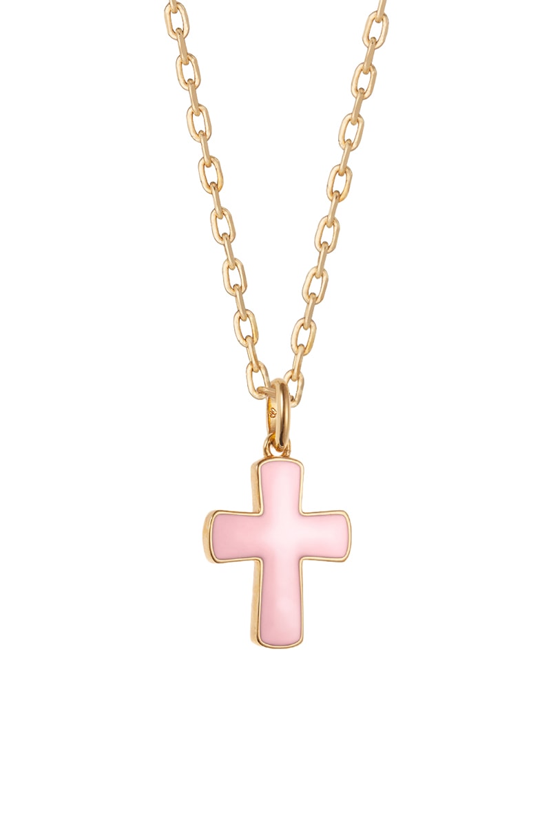 Collier personnalisable Croix rose - Argent ou plaqué or jaune