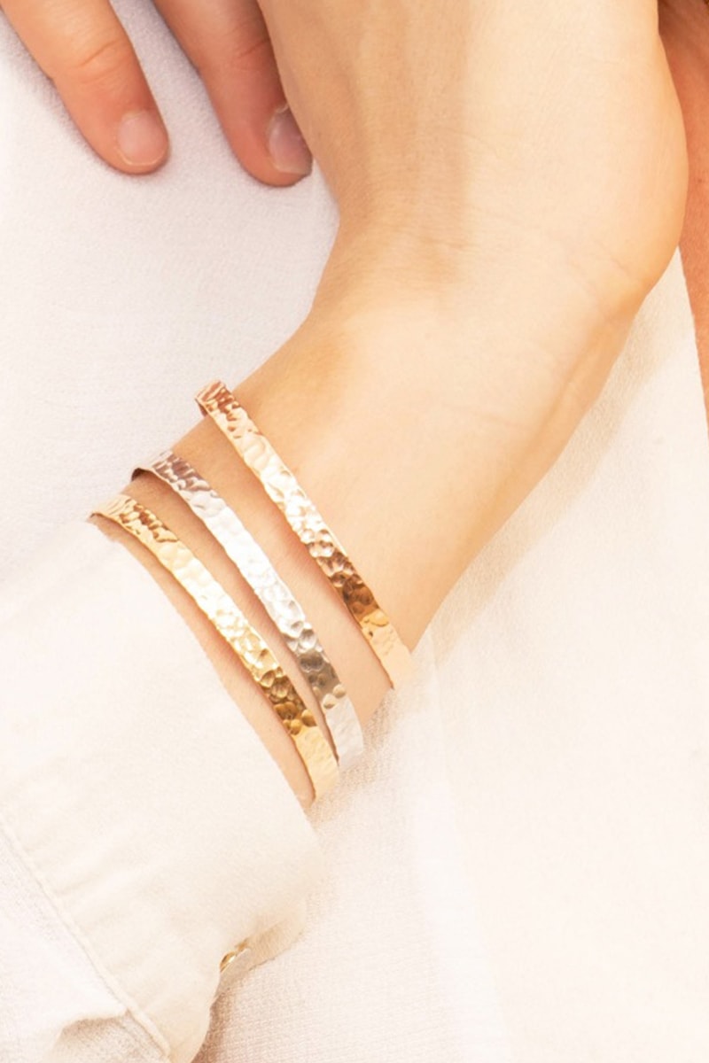 Jonc personnalisable semi-rigide Martelé - Argent ou plaqué or jaune ou plaqué or rose