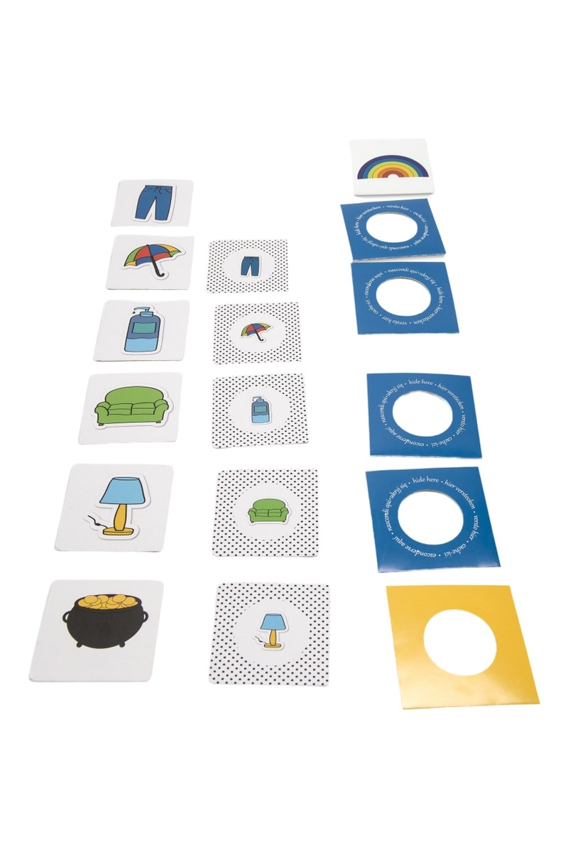 Règles du jeu : un joueur ou un parent cache les cartes dans toute la maison.