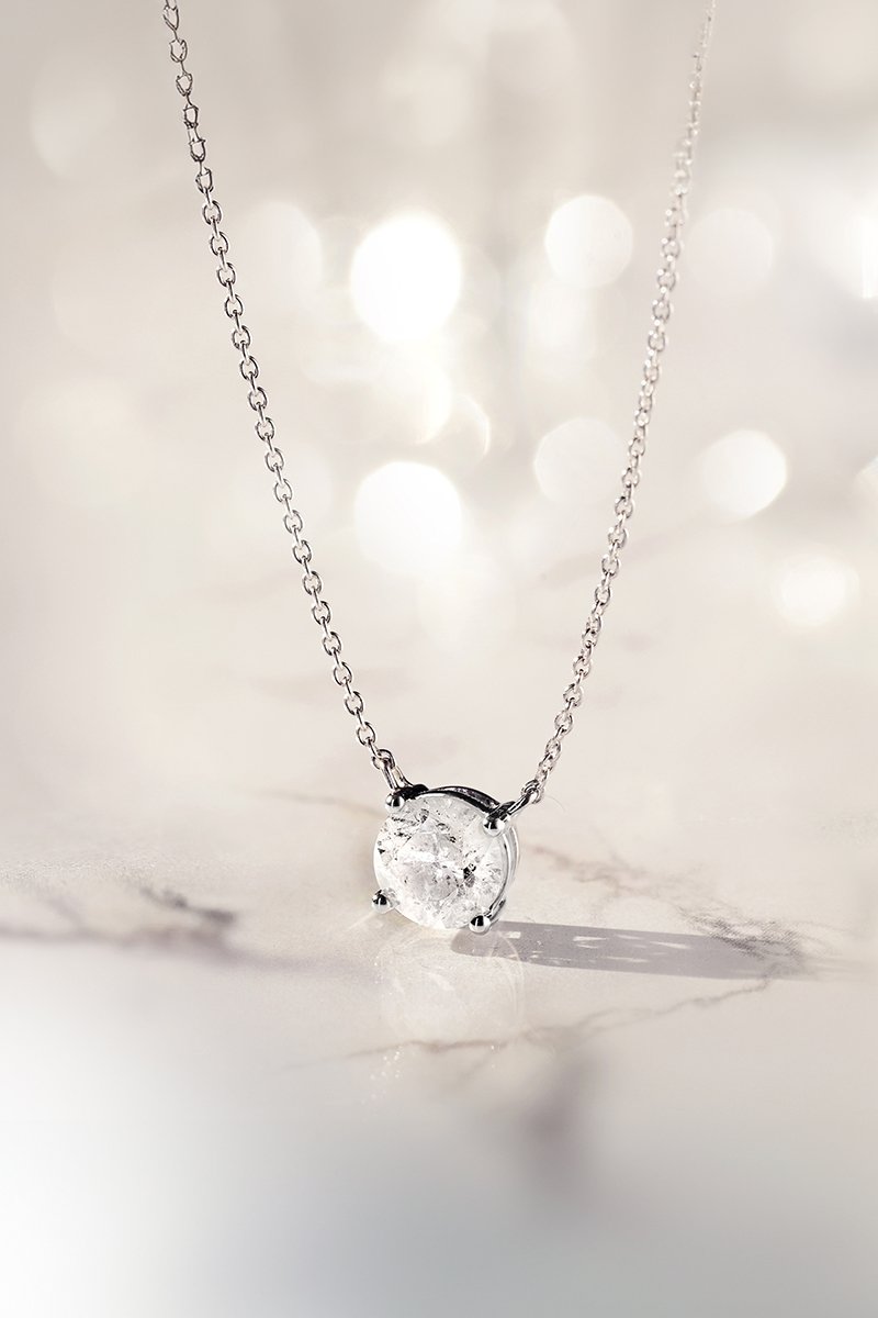 Collier en or blanc serti d’un diamant.