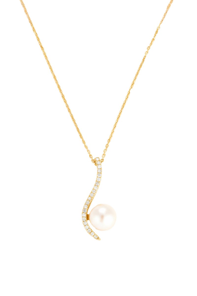 Pendentif en or jaune serti de 21 diamants et d'une perle d'imitation.