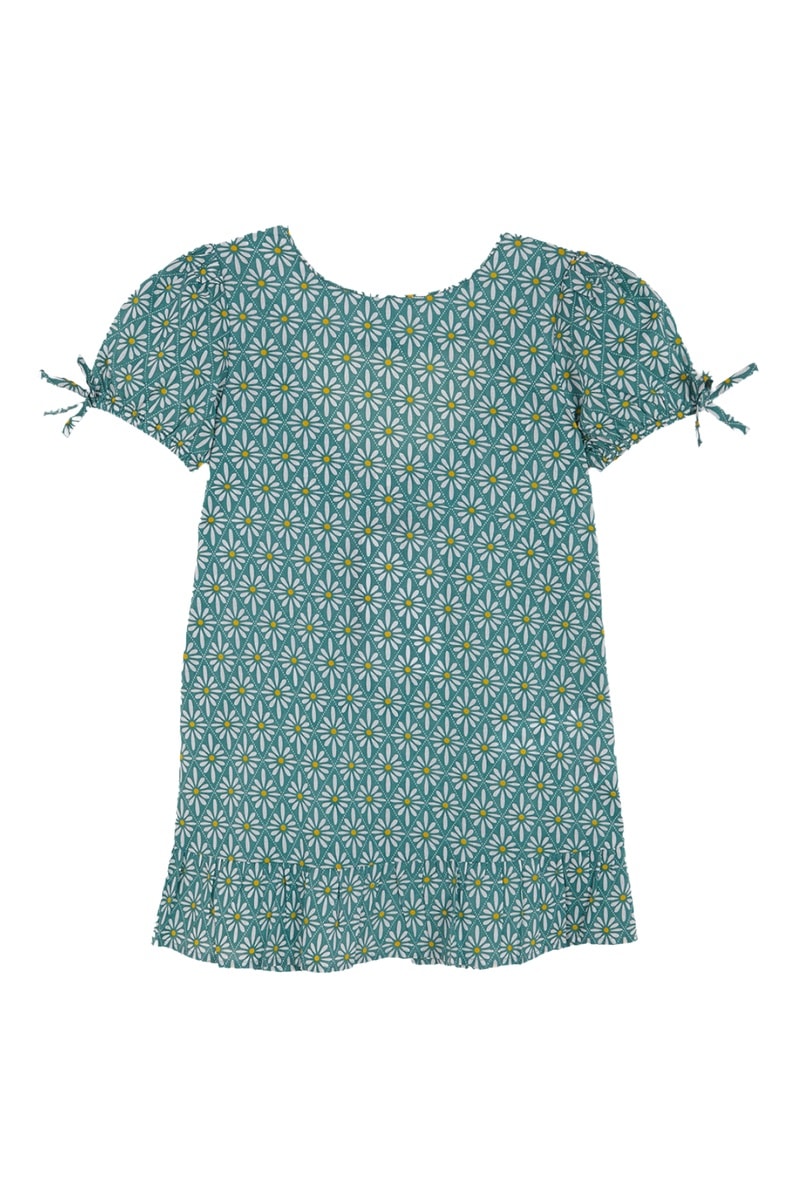 Robe à manches courtes bouffantes avec liens de serrage.