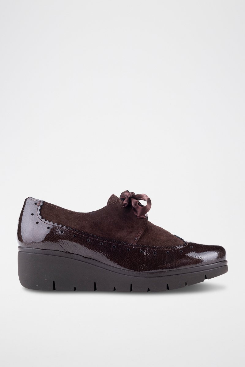 Derbys compensés en cuir verni.