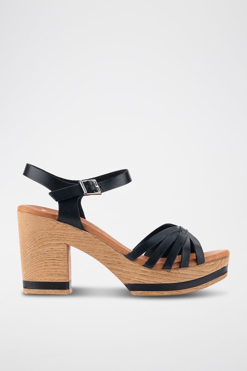 Sandales à talons en cuir.