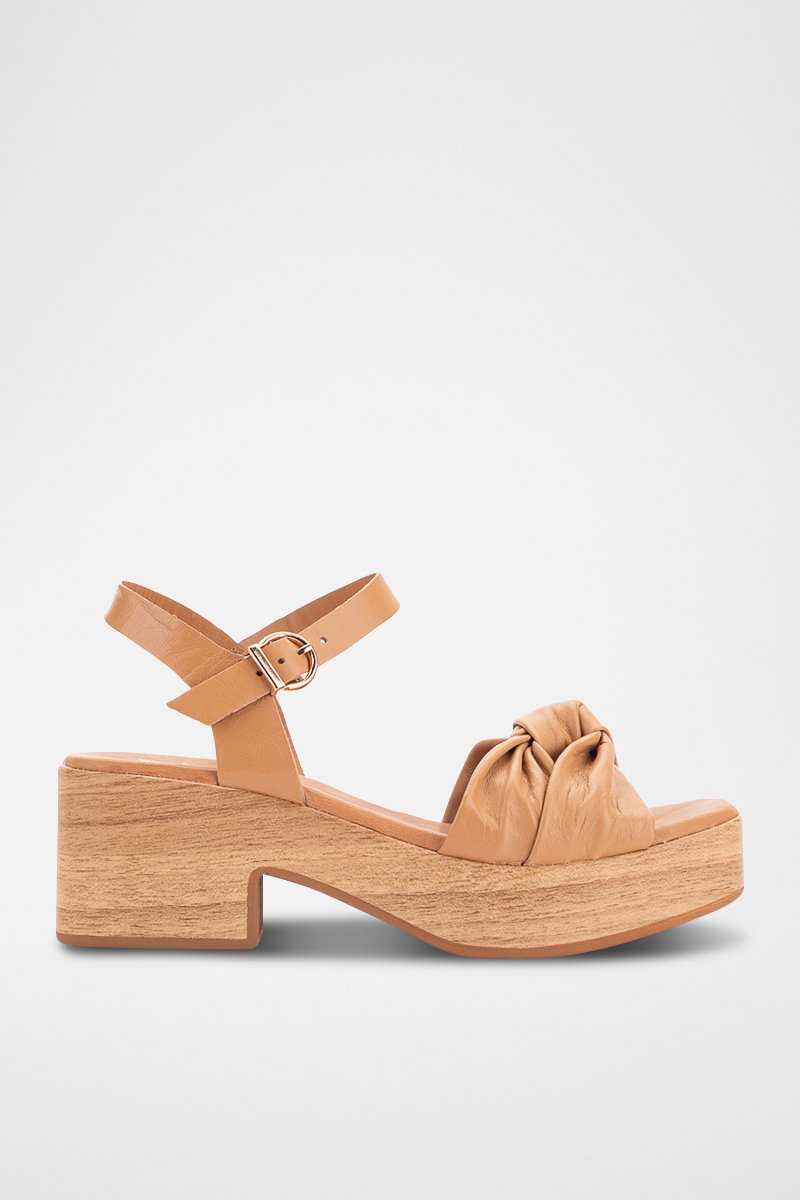 Sandales compensées en cuir - Camel