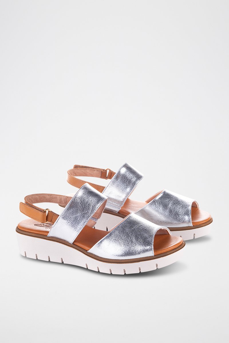 Sandales compensées en cuir Velvet - Argenté et camel
