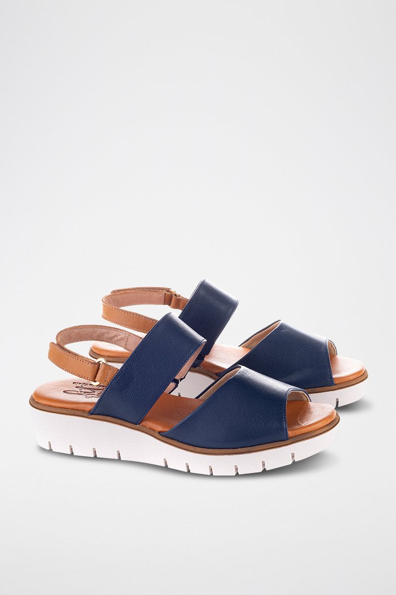 Sandales compensées en cuir Velvet - Bleu marine et camel