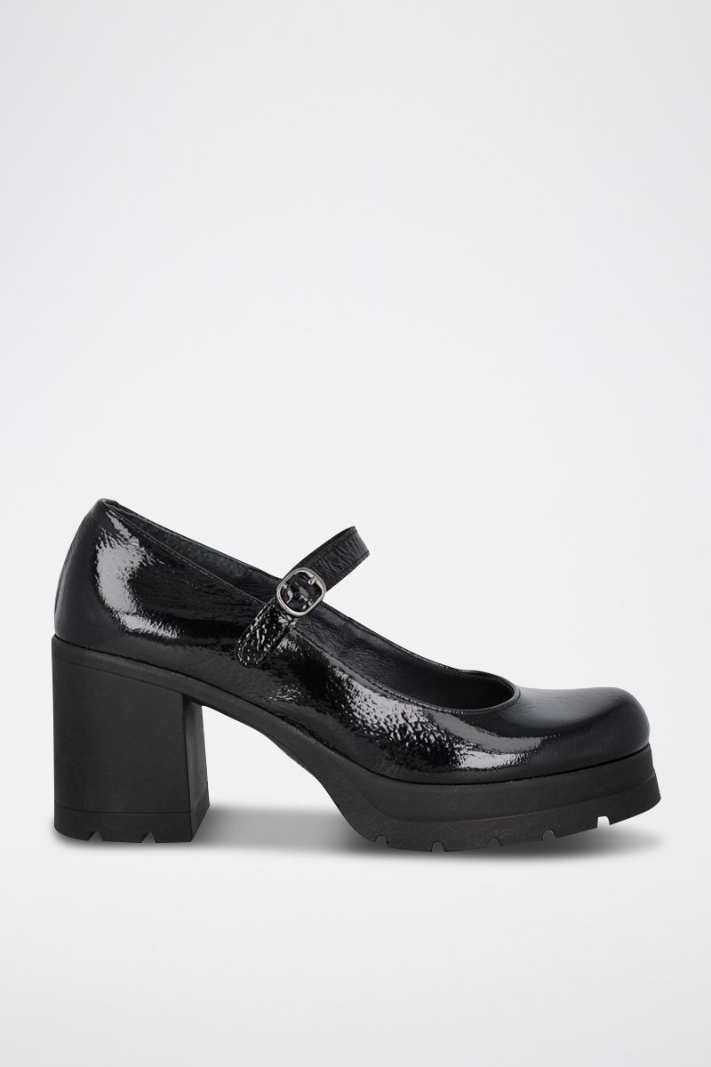 Babies à talons en cuir verni.