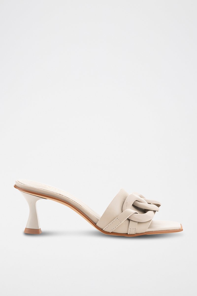 Mules à talons en cuir - Beige