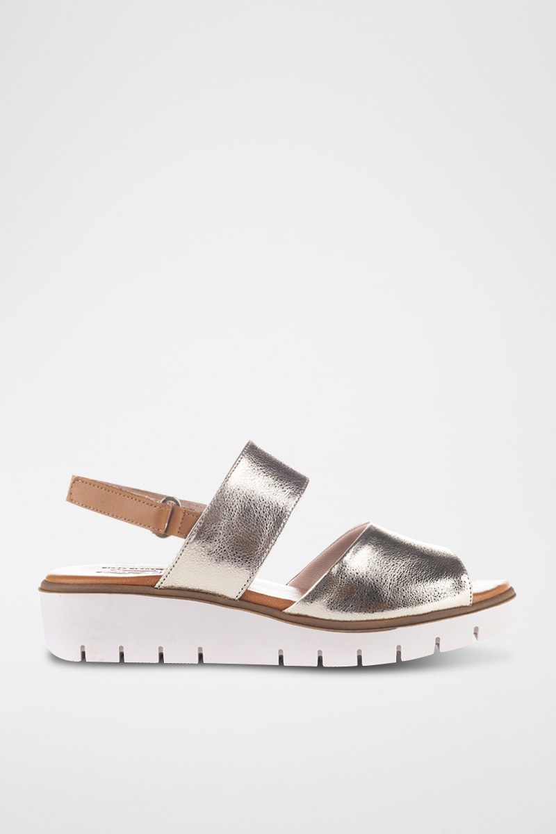Sandales compensées en cuir Lor - Argenté et marron clair
