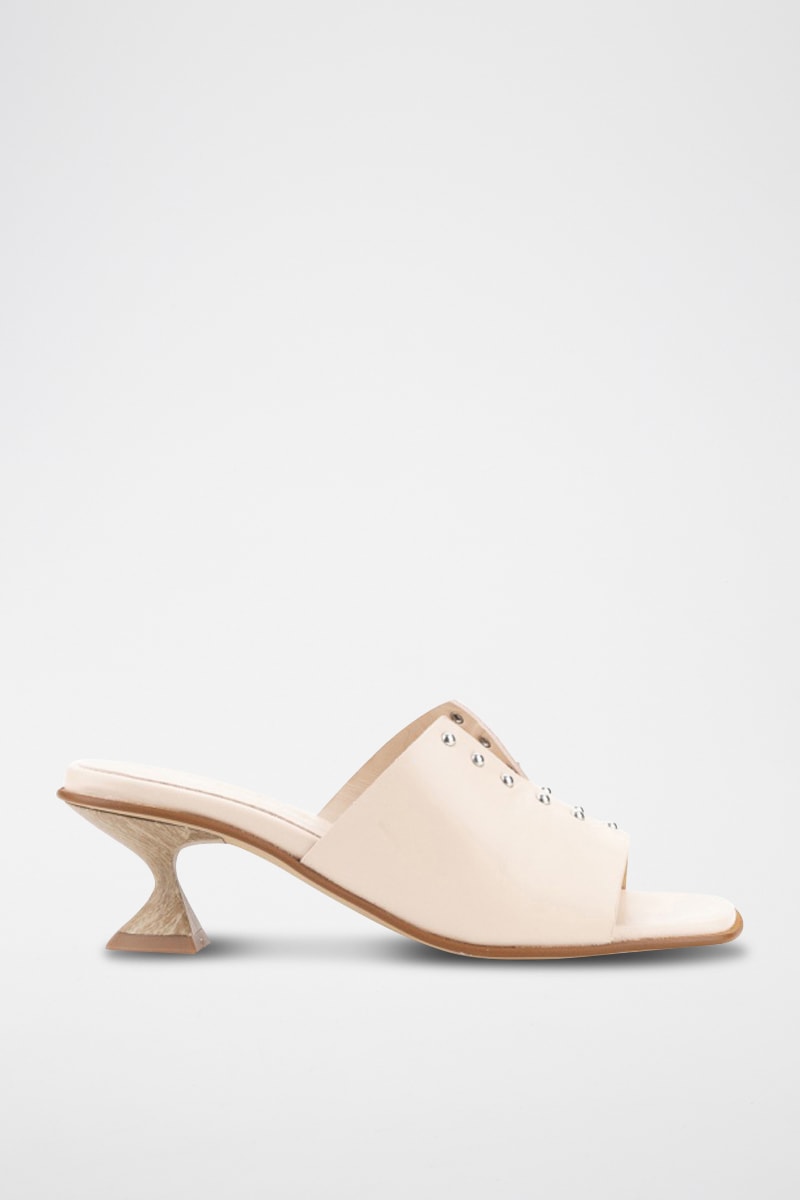 Mules à talons en cuir.