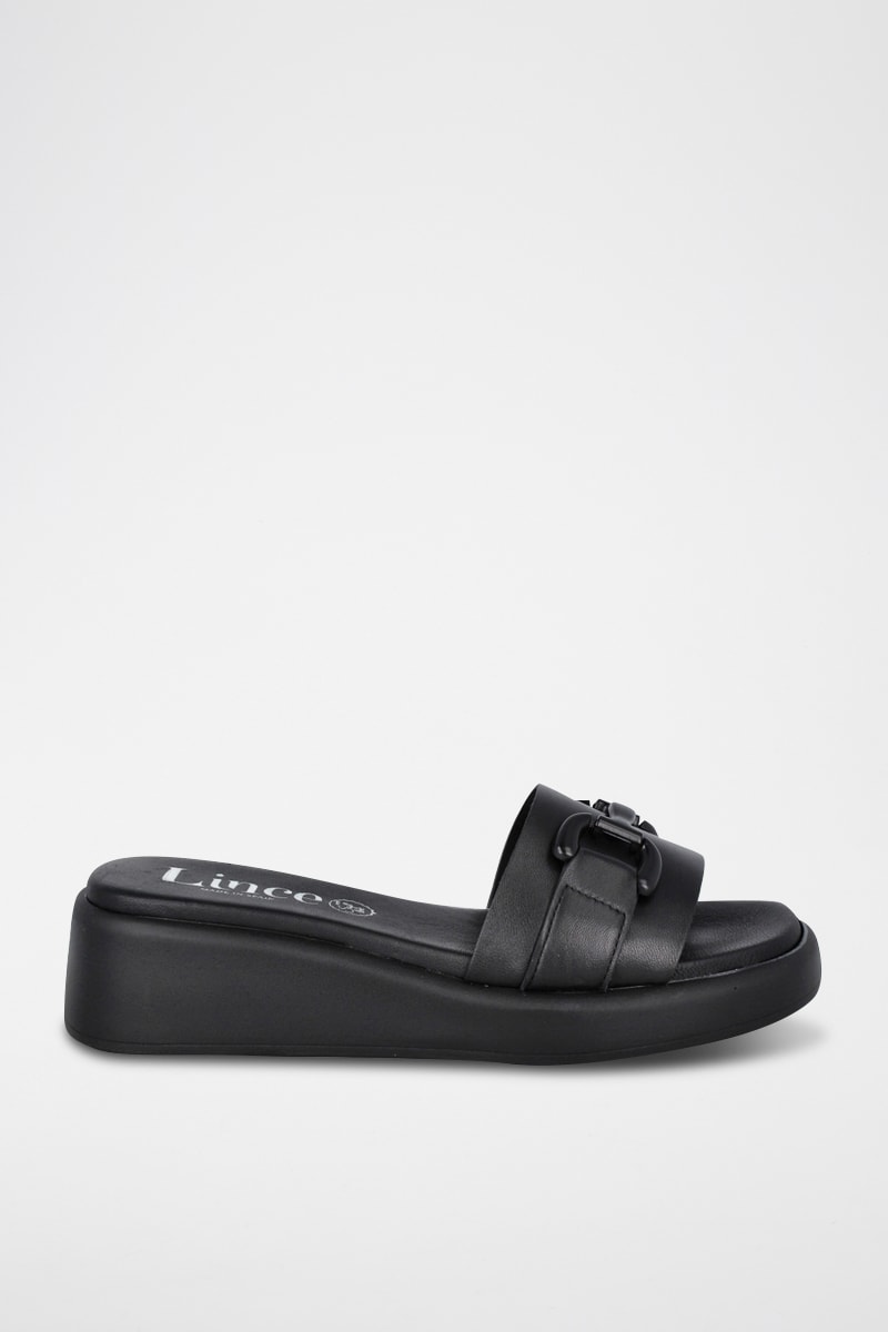 Mules compensées en cuir.