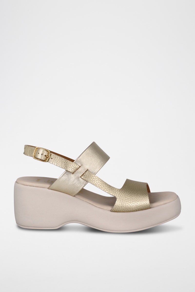 Sandales compensées en cuir Mali - Doré