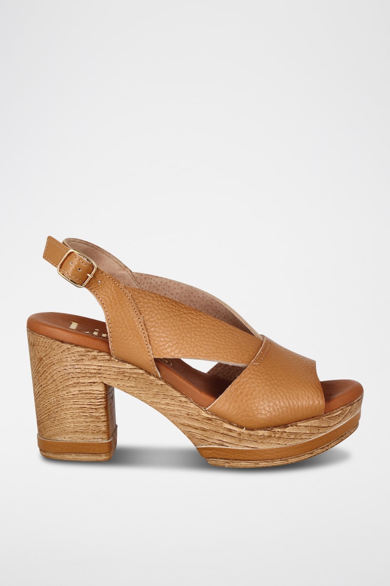 Sandales à talons en cuir.