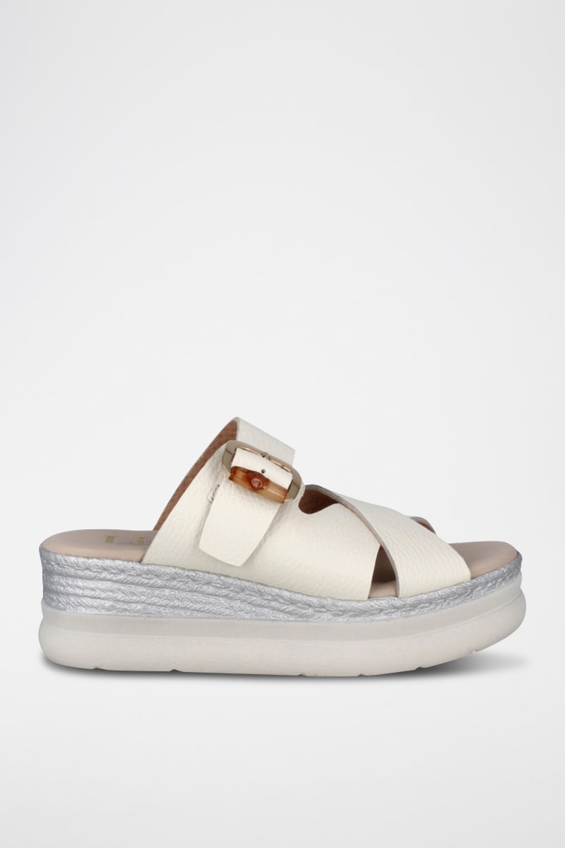 Mules compensées en cuir.