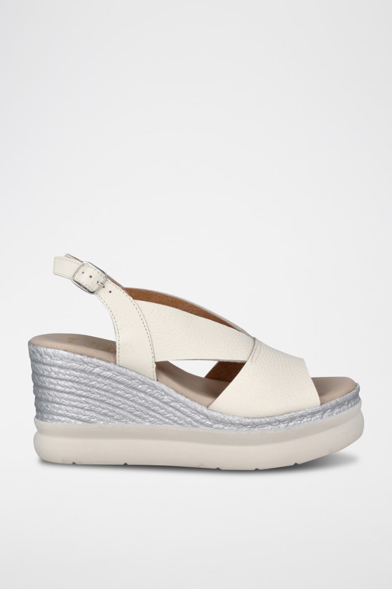 Sandales compensées en cuir grainé.