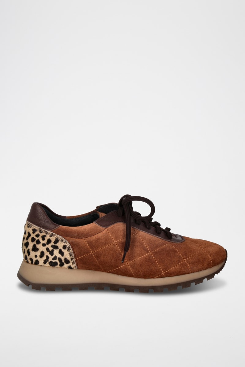 Empiècement effet poulain et à motifs léopard à l’arrière.