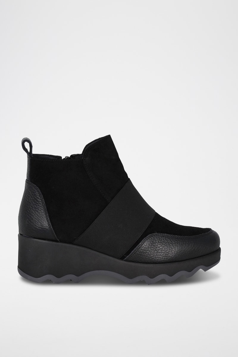 Bottines en cuir grainé et nubuck.