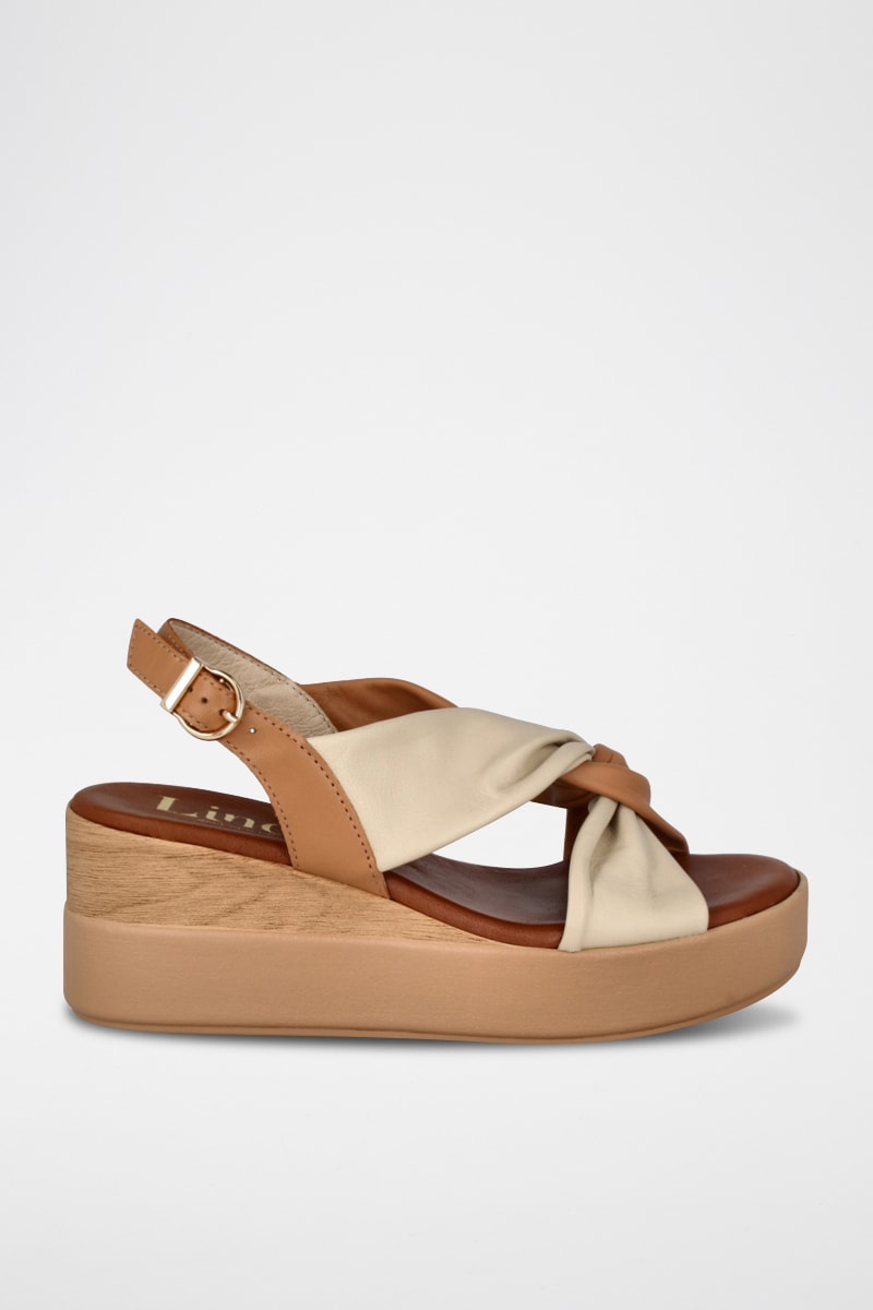 Sandales compensées en cuir Azores - Camel