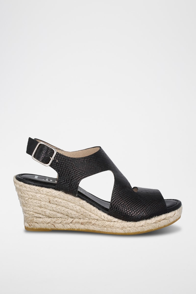 Sandales compensées en cuir.
